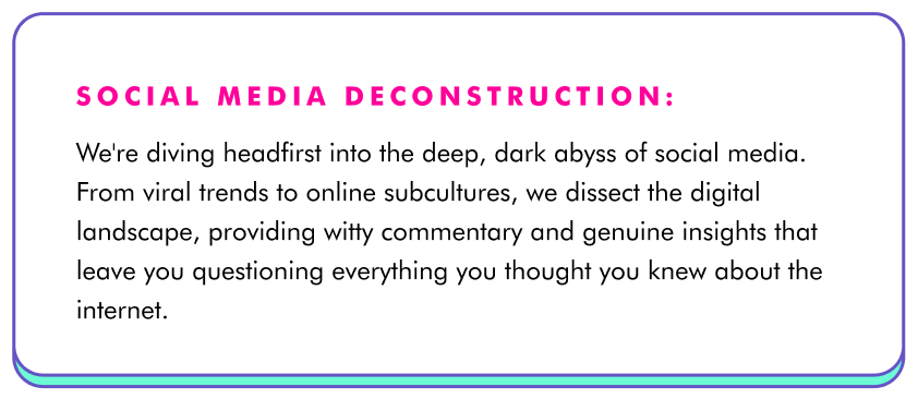 THE PODCASTThis is the unapologetically hilarious show that shatters barriers, defies stereotypes, and fearlessly explores the ever-evolving landscape of social media culture.