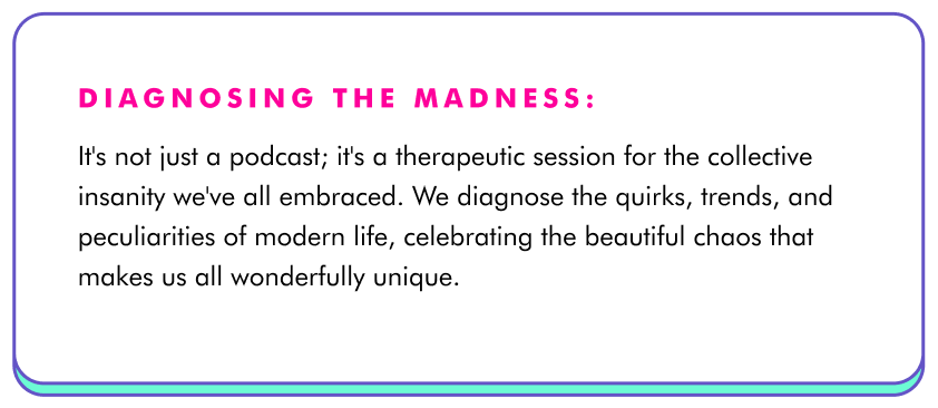 This is not just an auditory experience; it's a journey into the wild, wonderful world of our shared craziness. Tune in, laugh, learn, and embrace the beautifully chaotic ride that is life!